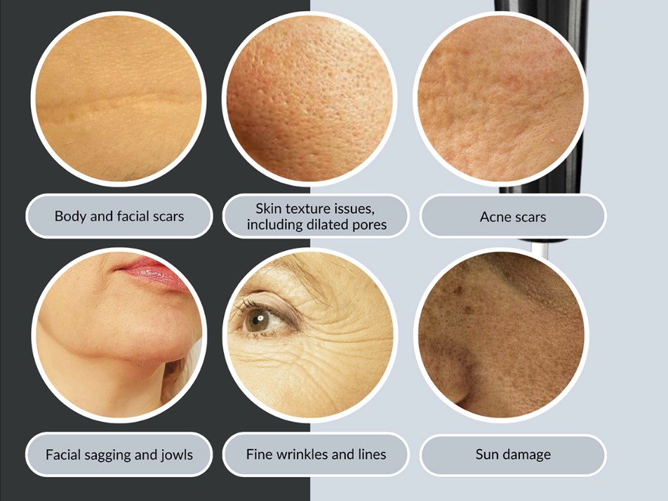 • Rugis et Lineis Tenuibus Reductio: Energia RF stimulat productionem collageni, quae rugas minuere et texturam cutis emendare potest.